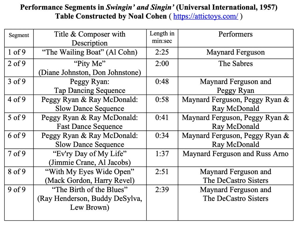While performing and recording many live tracks at Peacock Lane jazz room in Hollywood in December 1956 and January 1957, Maynard Ferguson (MF) and his orchestra (his West Coast Dream Band) were contracted by Universal International to record music and film a short subject Swingin’ and Singin’ (Universal Musical Short Film 3655 produced by Universal-International Pictures Inc./Universal Studios, December 18 & 21, 1956, © March 1, 1957).